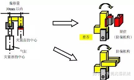 原則上夾緊器中心和夾緊面中心的偏移量應(yīng)該在30mm以內(nèi)。當(dāng)偏移量超過30mm時(shí),應(yīng)該設(shè)置限位機(jī)構(gòu)。
