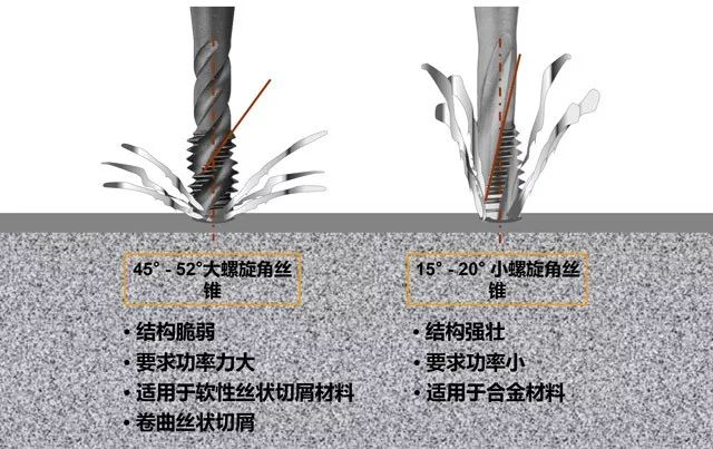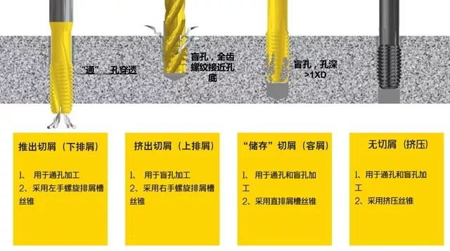 必須在切削中途停止并反轉(zhuǎn)出孔,而切削依然留在溝槽中。這就給金屬加工中的攻螺紋和絲錐的設(shè)計(jì)帶來(lái)一個(gè)最大的挑戰(zhàn)。