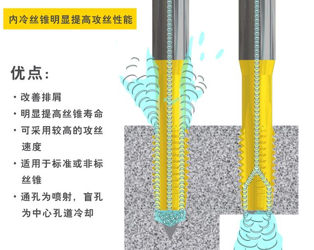 對(duì)于攻螺紋而言,潤(rùn)滑的目的是減少摩擦。因此,一般地,攻螺紋使用的是潤(rùn)滑劑,而非冷卻液;如果是冷卻液,則要增加 EP (超高壓) 或HP (高壓) 添加劑。