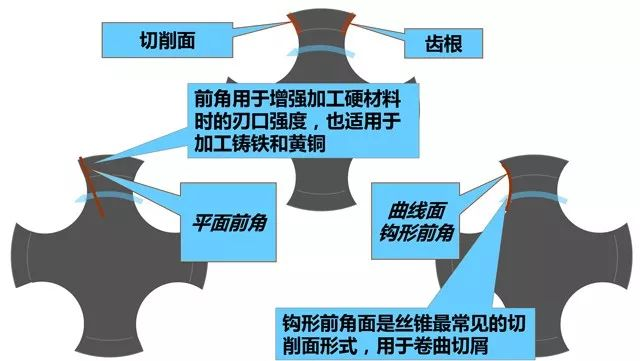 ②正確選用絲錐小的或負(fù)向鉤形角絲錐