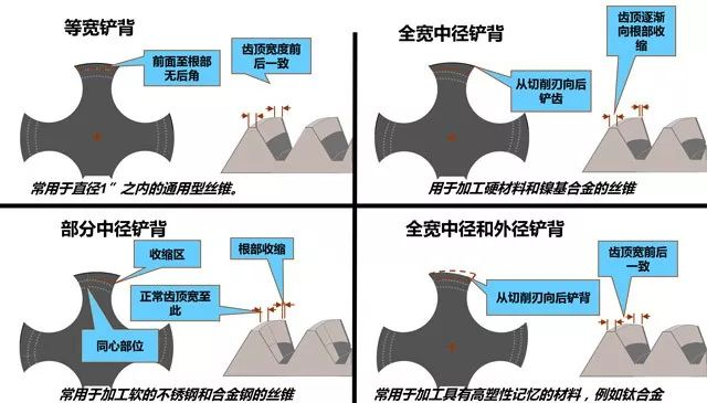 (3)倒錐:與其他所有的刀具類(lèi)似,絲錐也略有倒錐。