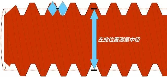 (5)螺紋中徑:中徑最為重要,因?yàn)樗刂扑新菁y組裝的配合與強(qiáng)度。中徑在節(jié)線上,這一位置的齒寬與相鄰齒槽寬度一致。